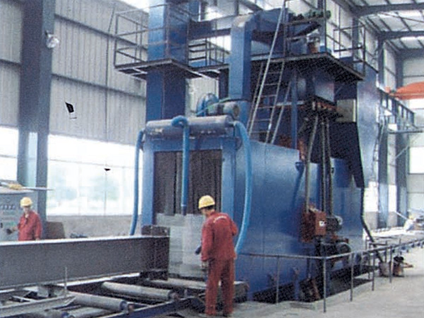 辊道通过式抛丸机能连续不间断工作,对各类钢材料,如钢板,钢材,钢梁,型钢,钢管和铸钢件等以一种连续通过方式进行除氧化皮、清理和预处理。清理过程中由可调速输送辊道将钢结构件或钢材送进清理机室体内抛射区,其周身各面受到来自不同坐标方位的强力密集弹丸打击与磨擦,使其上的氧化皮、锈层及其污物迅速脱落,钢材表面就获得一定粗糙度的光洁表面,在清理室外两边进出口辊道装卸工件。落入钢材上面的弹丸与锈尘经吹扫装置吹扫,分离后的纯净弹丸供抛丸循环使用。抛丸清理中产生尘埃,由抽风管送向除尘系统,净化处理后的净气排放到大气中。